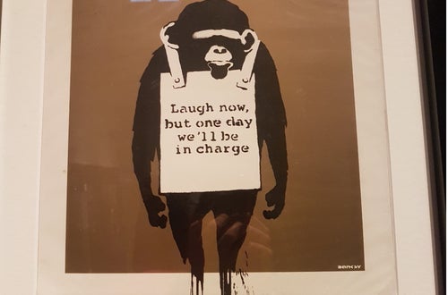 „Any fame is a by-product of making something that means something“ – jegliche Berühmtheit ist ein Nebenprodukt von etwas, das man tut, das etwas bedeutet. So sind seine Graffitis in Bild und Text Stellungnahmen zu sozialen und politischen Themen, die aktueller nicht sein könnten und Wahrheiten unserer modernen Gesellschaft aufzeigen. Er kommentiert damit Rechte von Kindern, Flucht und Migration, Kommunikation und Massenmedien, Umweltzerstörung, Krieg und den Kunstmarkt. Die Schüler*innen erfuhren erstmals, dass Kunst zum Erlebnis werden kann und ließen sich auf Banksy‘s Werke ein, die für Frieden, Gerechtigkeit und Freiheit stehen.