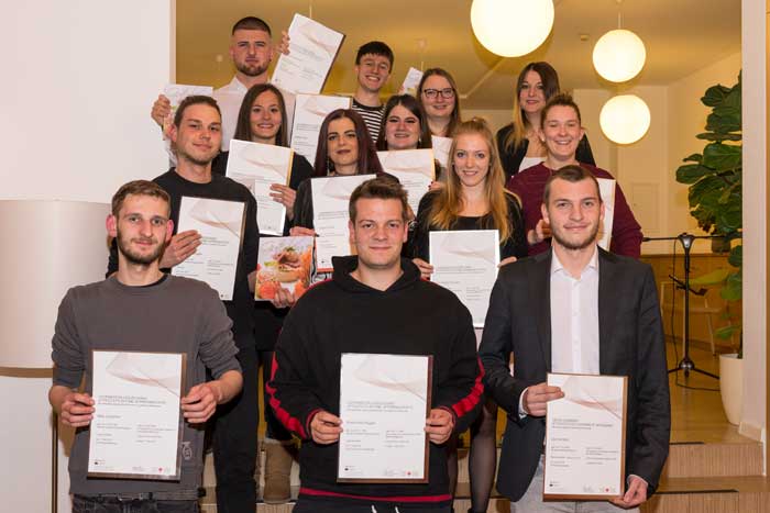 Im feierlichen Rahmen wurden den Bürofachkräften, Lagerverwaltern, Verkäufern, Mediengestaltern und Medientechnologen das Lehrabschlussdiplom sowie der Gesellenbrief überreicht.