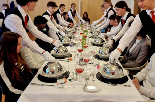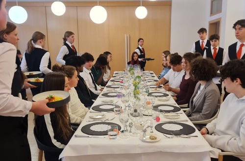 In der Welt des guten Benehmens, wie sie von Knigge geprägt wird, geht es vor allem darum, die Wünsche und Bedürfnisse anderer Menschen zu respektieren, offen für ihre Ansichten zu sein und auf dieser Basis miteinander zu kommunizieren. Aus diesem Grund hatten auch in diesem Jahr die Fachrichtungen Handel & Verwaltung sowie Medien die Möglichkeit, an einem Seminar zum Thema Knigge an unserer Hotelfachschule teilzunehmen.