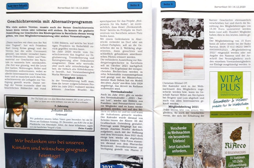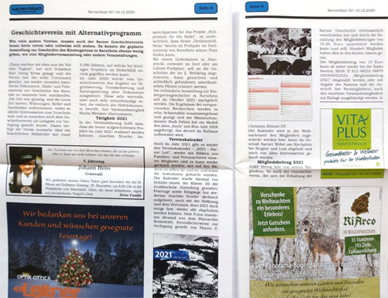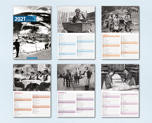 Im September 2020 wendete sich der Sarner Geschichtsverein mit einem ganz besonderen Anliegen an unsere Schule. Der traditionelle Foto-Kalender mit historischen Motiven sollte heuer nach einer einjährigen Pause wieder publiziert werden. Ein Kalender mit einer ganzen Schar von Heiligen und kirchlichen Festen, wo noch dazu genug Platz für das händische Vermerken von Geburtstagen und wichtigen Ereignissen sein sollte, war eine echte Herausforderung. Die Schüler*innen der 3 B Medien arbeiteten mit Herrn Erschbaumer und Frau Cagol mehrere Vorschläge für die etwas ungewohnte Zielgruppe aus, stehst bedacht einen guten Kompromiss zwischen traditioneller Gestaltung und einem moderneren Stil zu finden. Gewonnen hat schlussendlich der Entwurf von Savoi Janine, Platz 2 ging an Erlacher Samuel und Platz 3 an Geiser Anika. Die Sarner waren sehr erfreut, auch wenn wir sie nicht ganz für eine etwas gewagtere Gestaltung gewinnen konnten. Wir wünschen Ihnen noch viel Freude mit Ihrem Kalender und bedanken uns für Ihre Großzügigkeit.