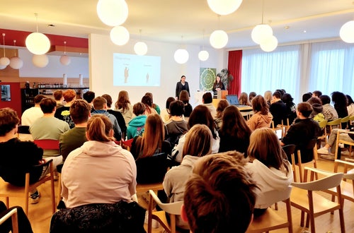 Manches stirbt einfach nie aus. Gutes Benehmen zum Beispiel. Und dabei ist es ganz egal ob jung, ob alt, ob live oder digital. Wie es gelingt, Fettnäpfchen gekonnt auszulassen, bleibenden – und guten – Eindruck zu hinterlassen, erklärten unsere Benimm-Expertinnen Alessia Ambrosini und Stefanie Abraham (Hotelfachschule) den Schüler:innen der Fachrichtungen Handel & Verwaltung, sowie Grafik und Medien.