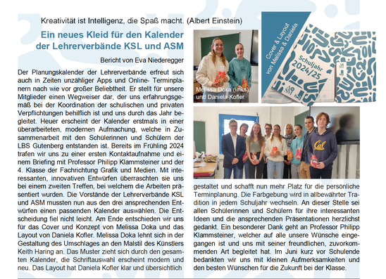 Neues Design für den Kalender der Lehrerverbände KSL und ASM
