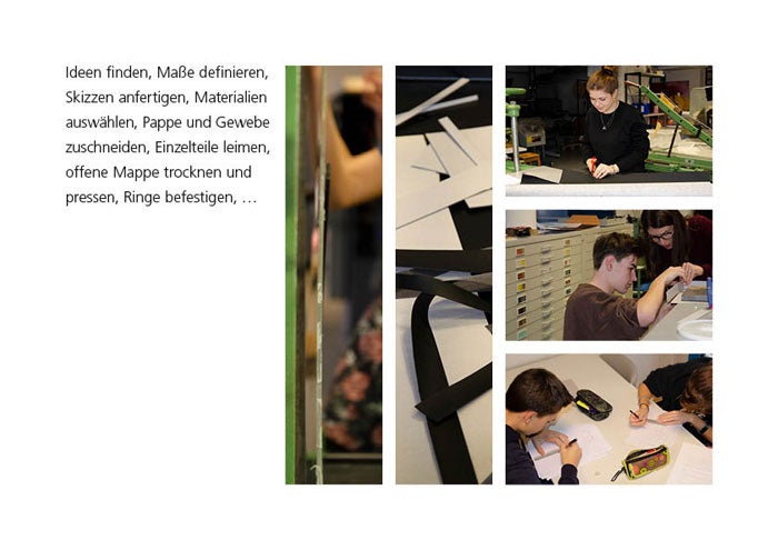 11 persönliche Portfolios wurden von den SchülerInnen entworfen, geplant und in der Buchbinderei gefertigt.