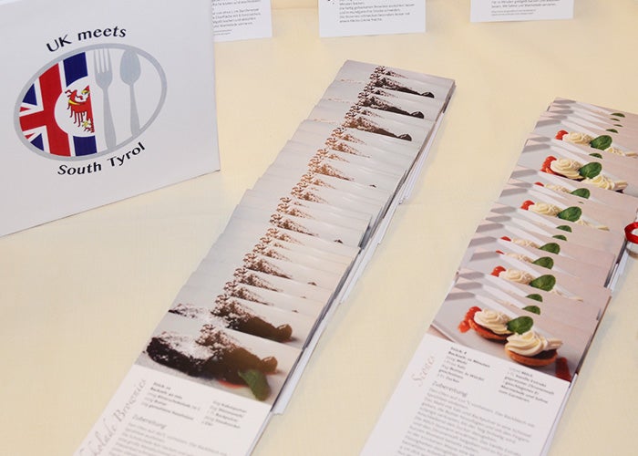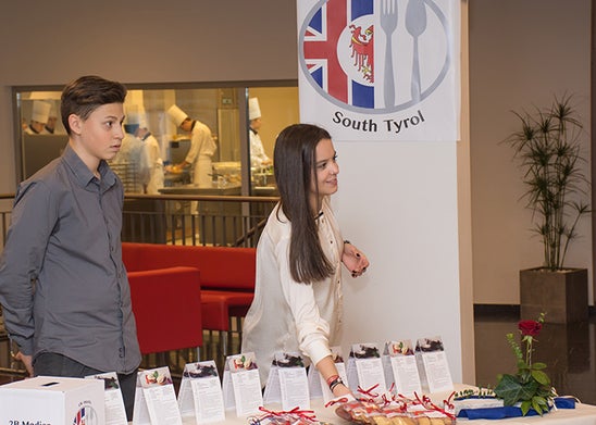Am Tag der offenen Tür haben die Schüler und Schülerinnen der Klassen 2B Hotelfachschule und 2B Mediengestalter ihr Projekt „The UK meets South Tyrol“ präsentiert. Ziel dieses Projektes war es, einen Bezug zwischen dem Fach Englisch und den Praxisfächern verschiedener Fachrichtungen herzustellen. Dazu wurde der Speisesaal der Hotelfachschule in ein englisches Restaurant verwandelt, in dem nach typisch englischen Rezepten gekochte und gebackene Köstlichkeiten zum Verwöhnen dann auch in englischer Sprache serviert wurden.