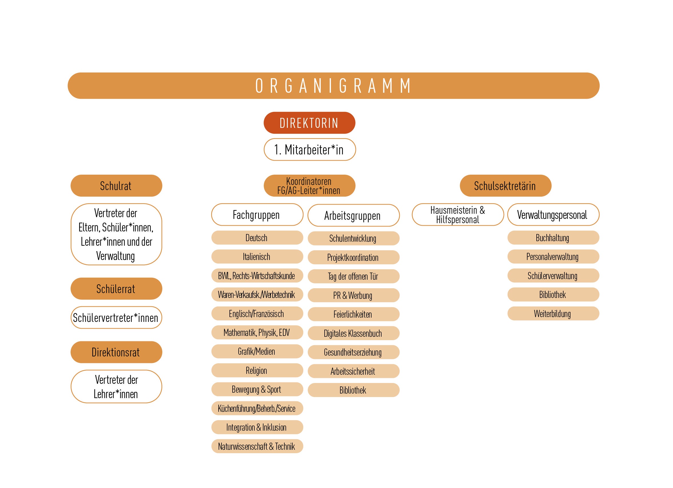 Dieses Organigramm stellt eine Übersicht zu unserer Schule auf Struktur, Organisation und Aufbau dar.